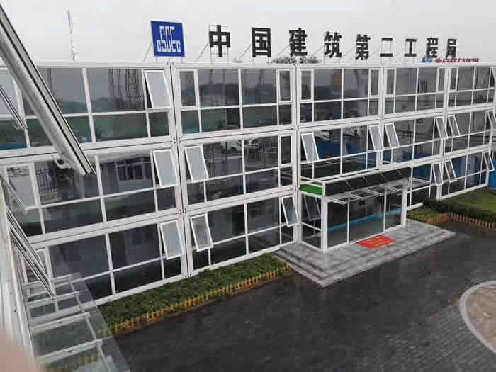 工程用項目部、玻璃幕辦公室、會議室、廚房、衛(wèi)生間、配電室、門禁房等